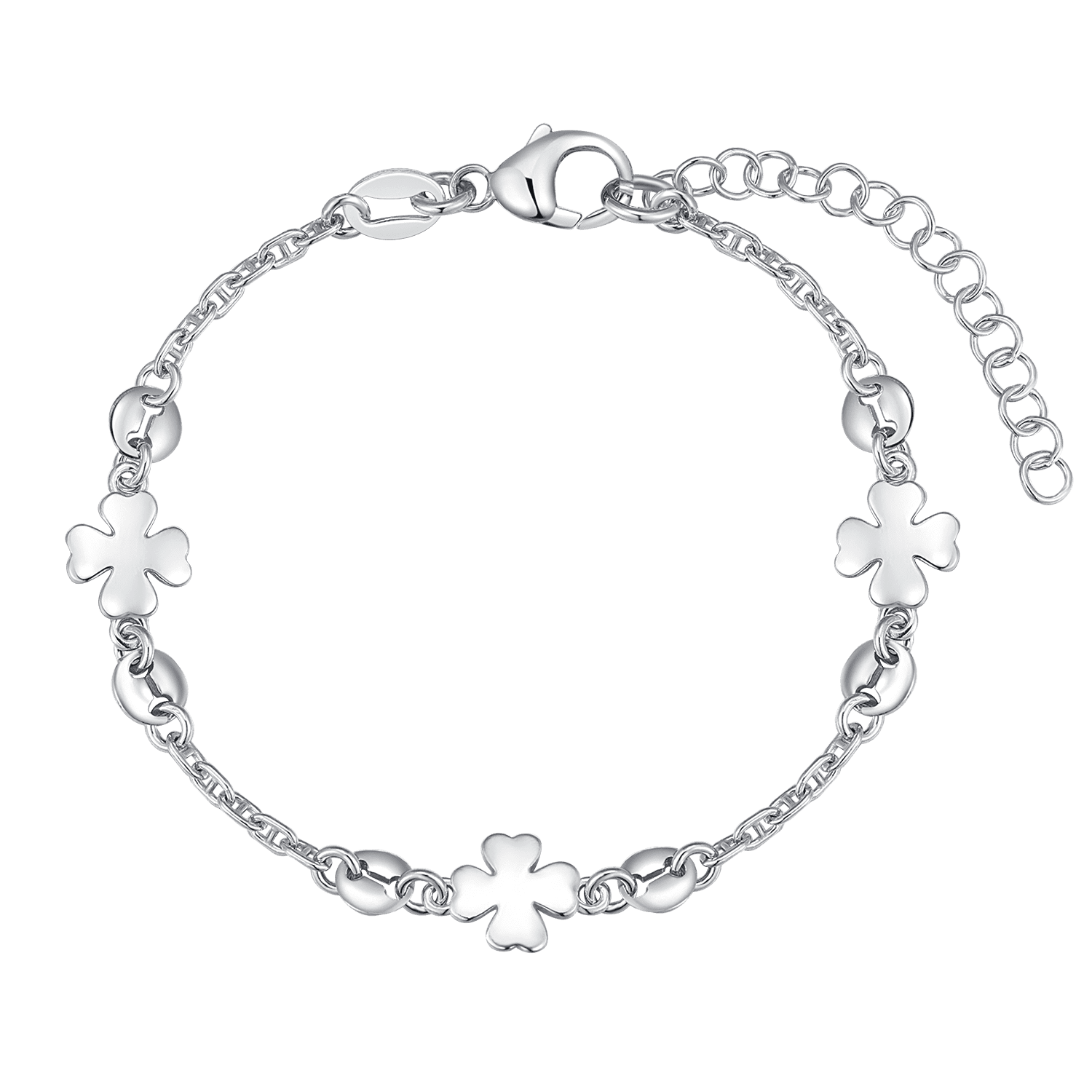 Sølv armbånd rhodineret 3 stk. firkløver. Længde 17+4 cm.