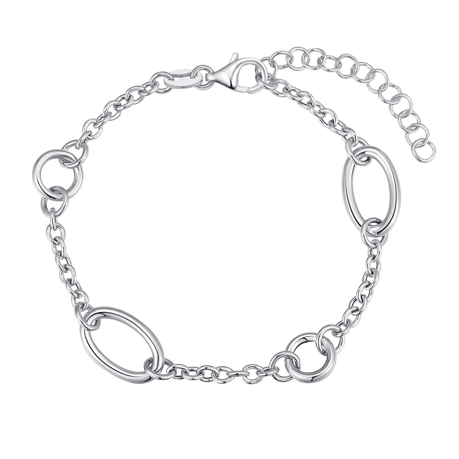 Sølv armbånd rhodineret ovale og runde led med kæde imellem. Længde 17+4 cm.
