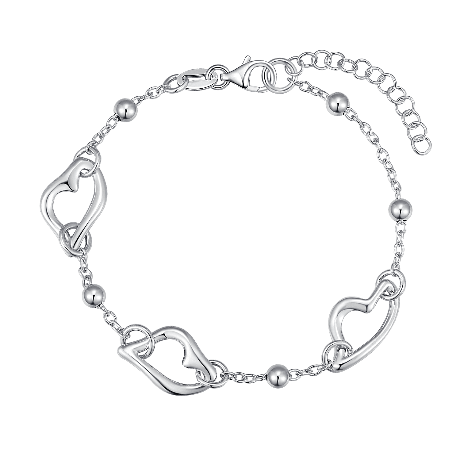 Sølv armbånd rhodineret skæve hjerter og kugler. Længde 17+4 cm.