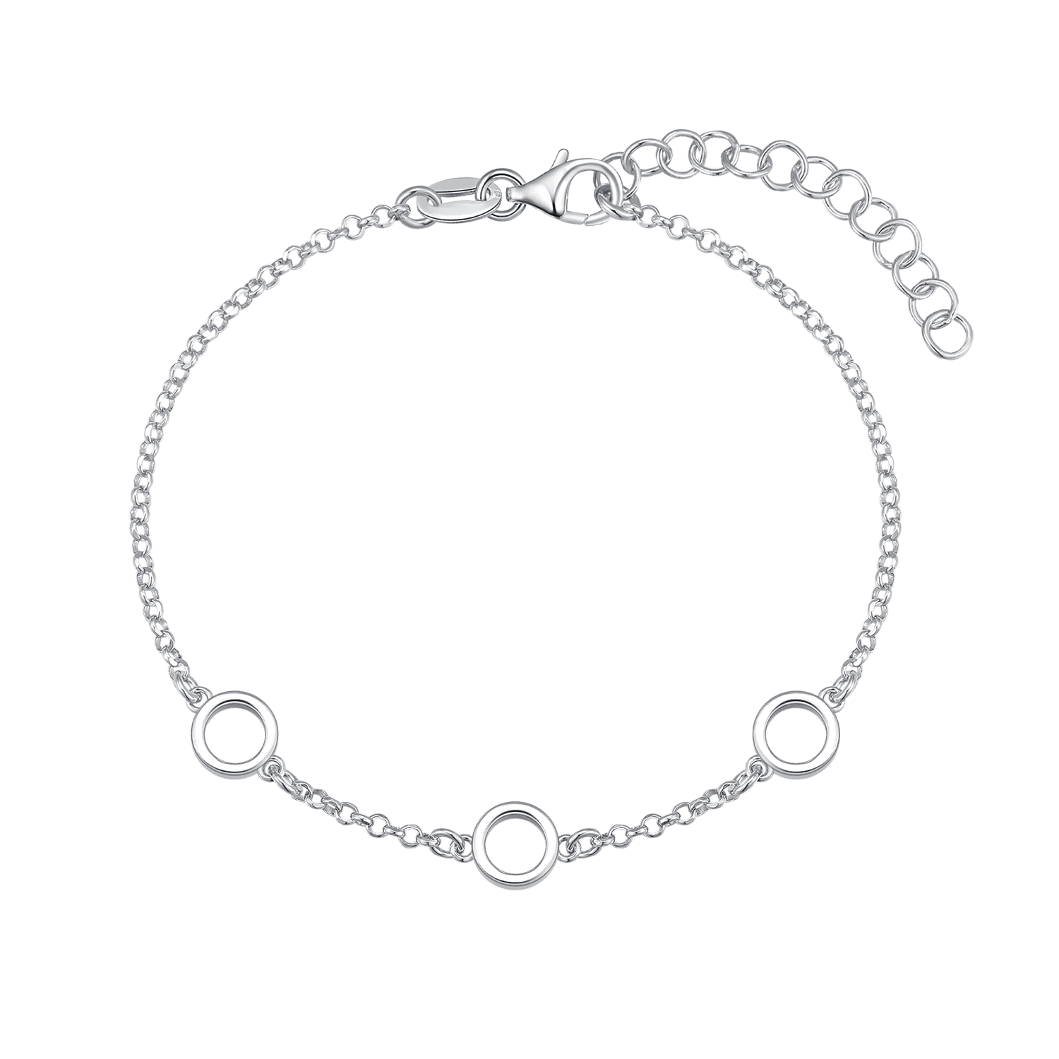 Sølv armbånd rhodium 3 cirkler på kæde. Længde 17+4 cm.