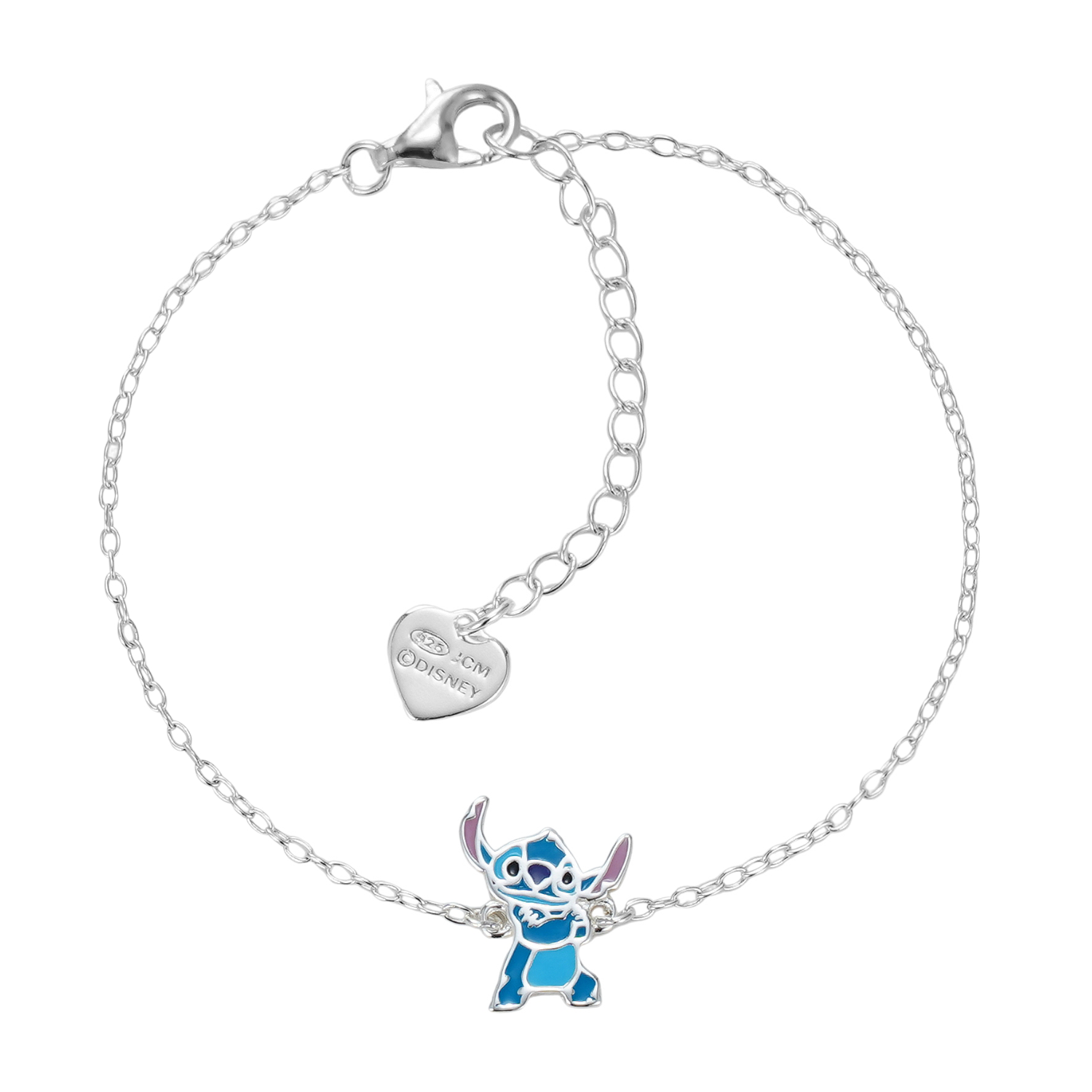 Sølv armbånd Stitch med hjerte i ende af kæden. Mål: Stitch 10 x 5 mm. Længde 17 cm.