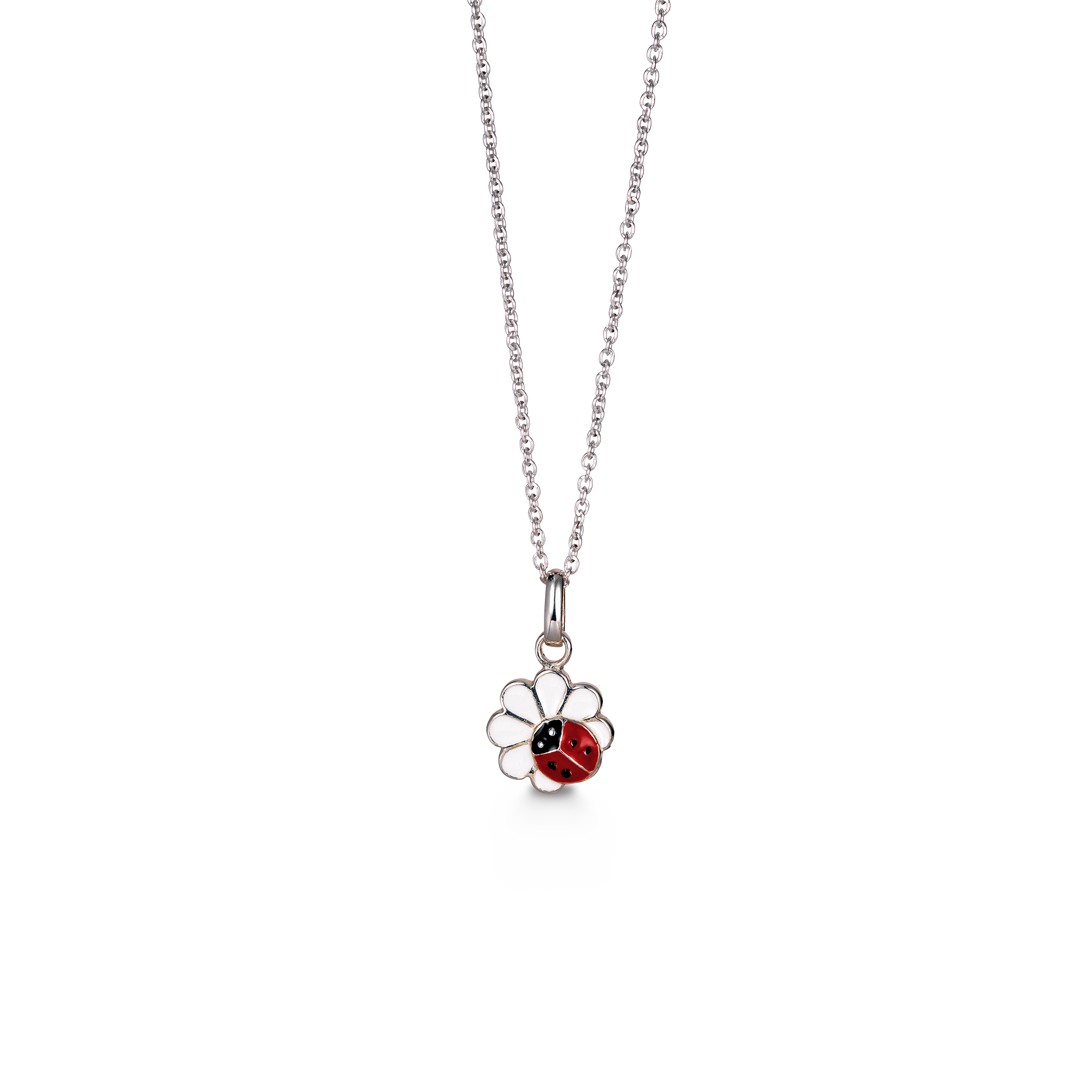 Sølv Collier M/Emalje Blomst/Mariehøne