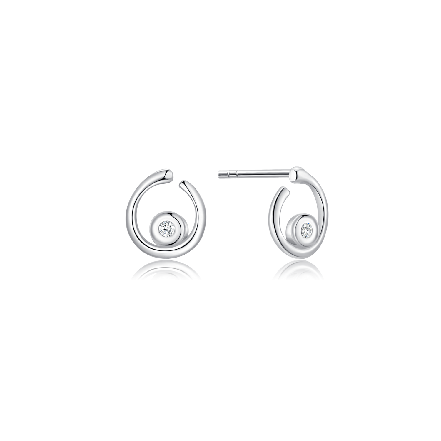 Sølv ørestikker rhodineret åben cirkel med en syntetiske cubic zirconia i bunden.