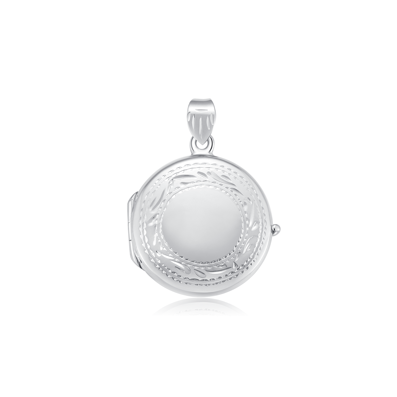Sølv vedhæng rhodineret medaljon cirkel med mønster i kanten.