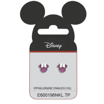 Stål ørestik Disney Minnie Mouse med lyserød ansigt og stål sløjfe.