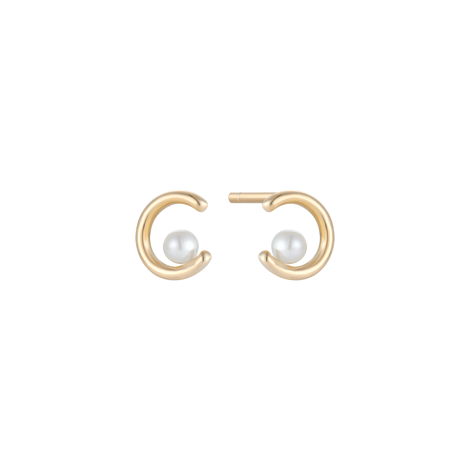 14 kt guld ørestikker åben cirkel med ferskvandsperle