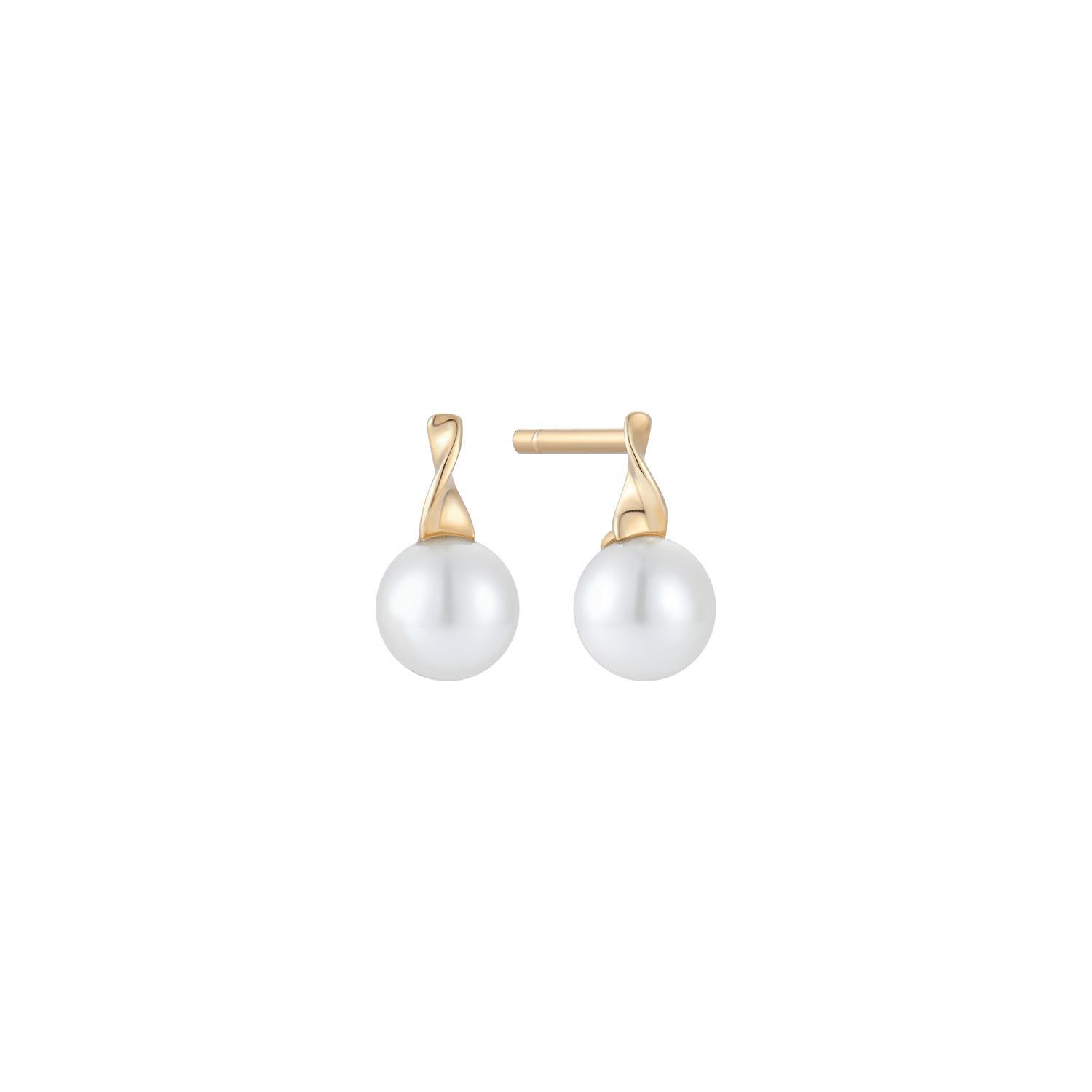 14 kt guld ørestikker drejet led med ferskvandsperle