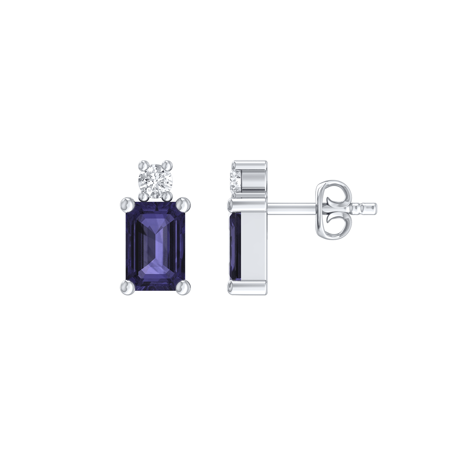 14 kt hvidguld ørestikker firkant Tanzanit og brillant på toppen Brillant i alt 0,09 ct w/si