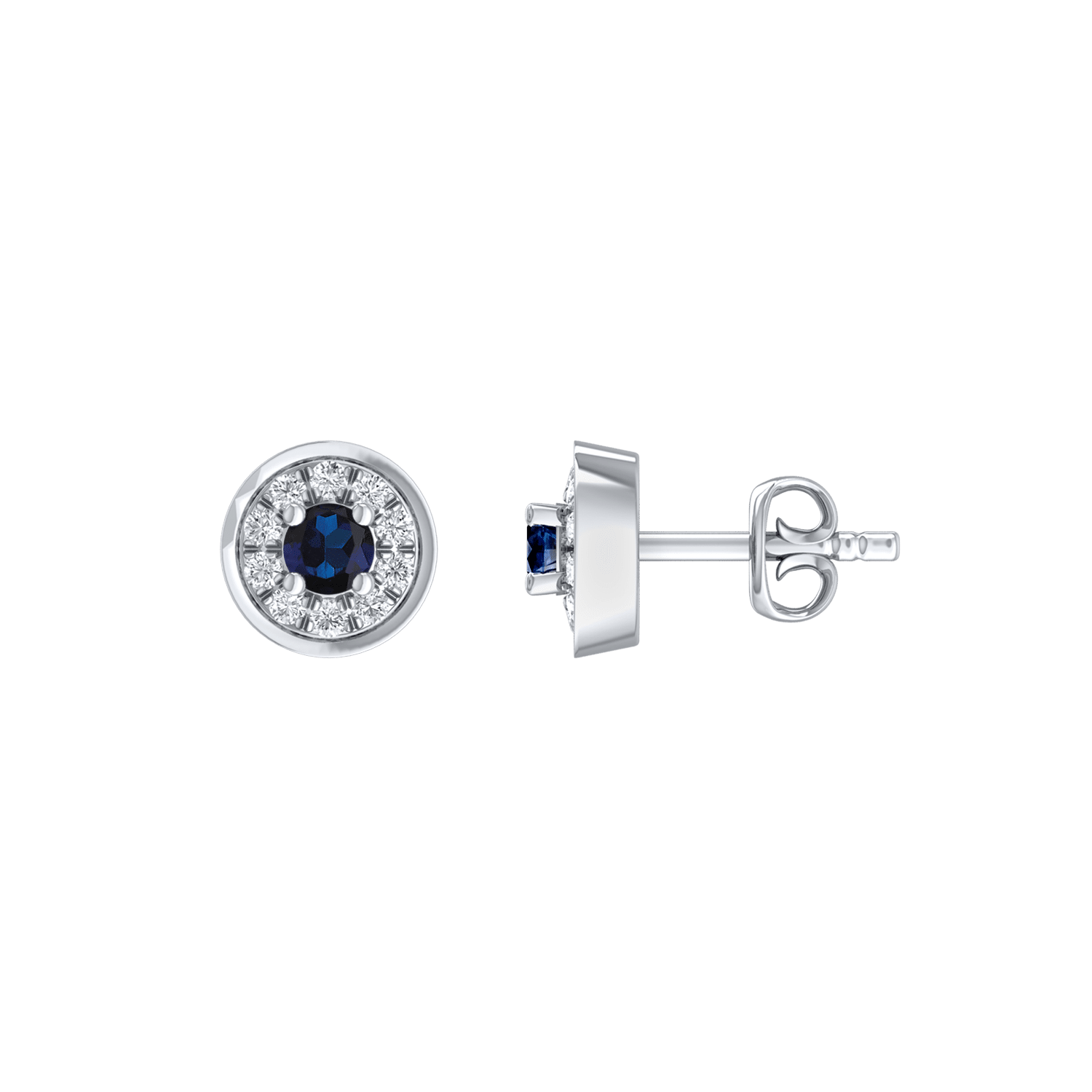 14 kt hvidguld ørestikker cirkel med blå safir og brillanter omkring Brillant i alt 0,11 ct w/si