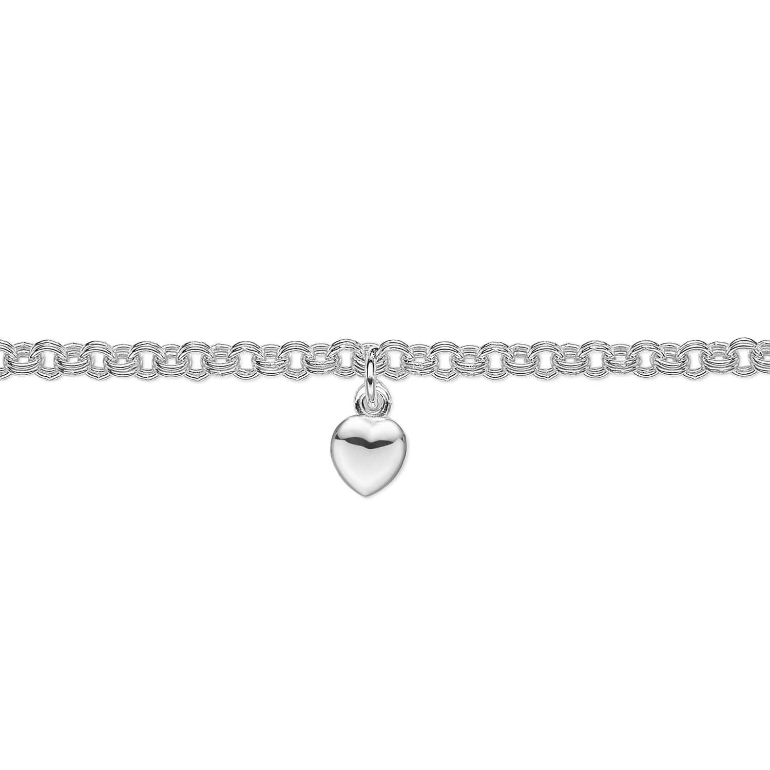 Sølv armbånd hjerte på dobbelt ærtekæde. Længde 15 cm.