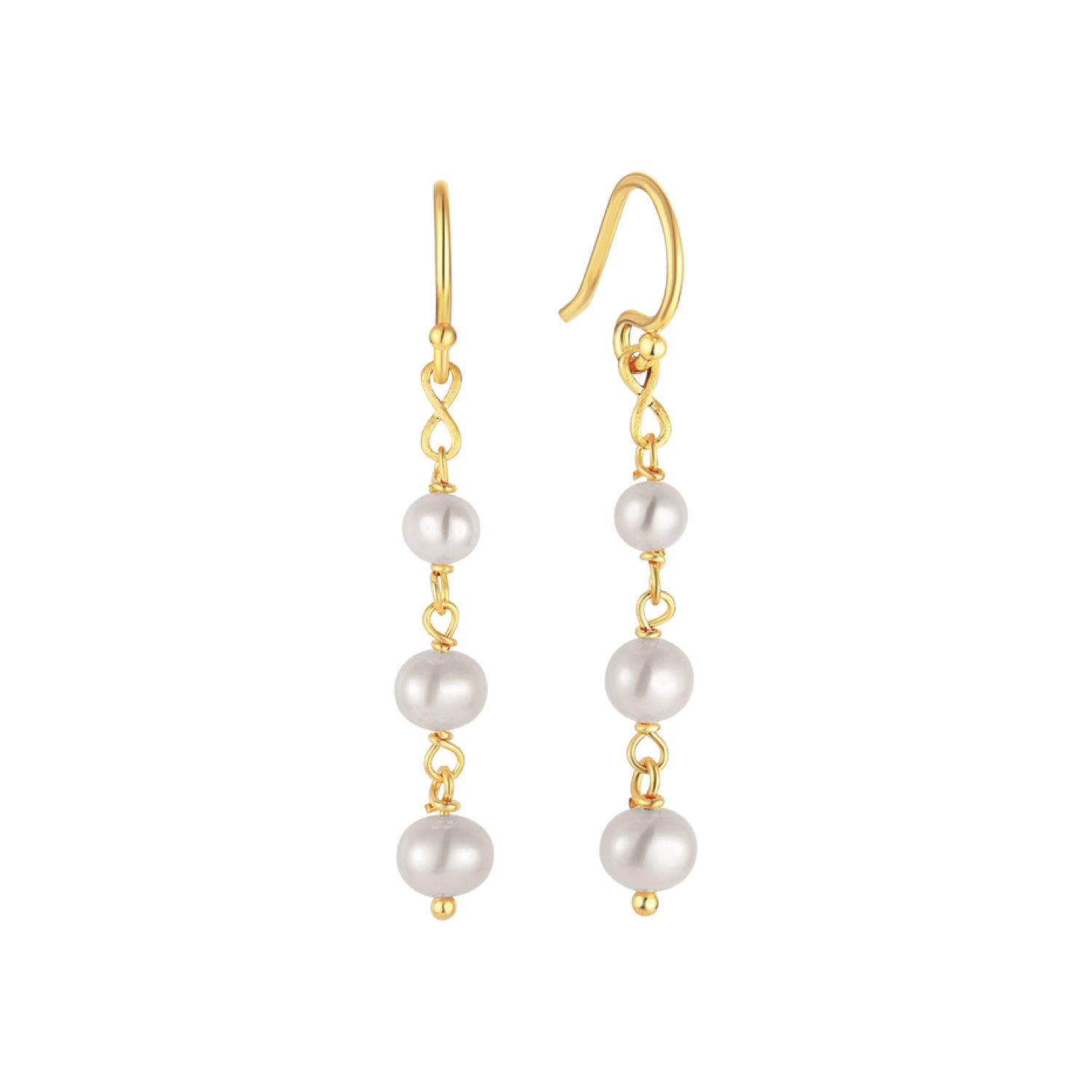 Sølvforgyldt ørehænger ferskvandsperler 3 styk på kæde."Infinity"