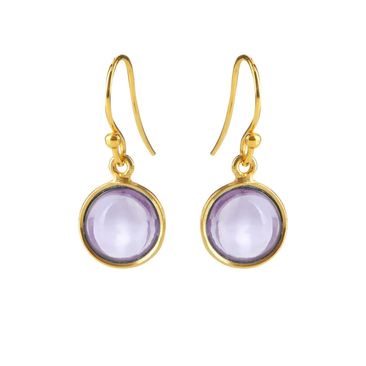 Ørering (bøjle) forgyldt sølv 10mm rund cabochon lys ametyst