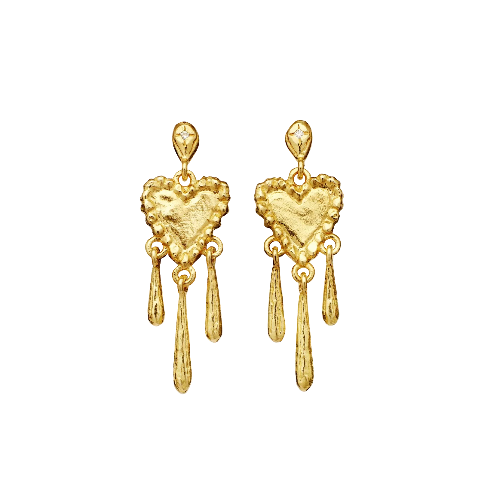 Kærlighed ender ikke altid lykkeligt. Vores Trista Øreringe indfanger essensen af hjertesorg med sine tunge gyldne tåre, der falder fra et hjerte. Men en lille zirkon foroven minder os om at kærligheden altid kommer tilbage.