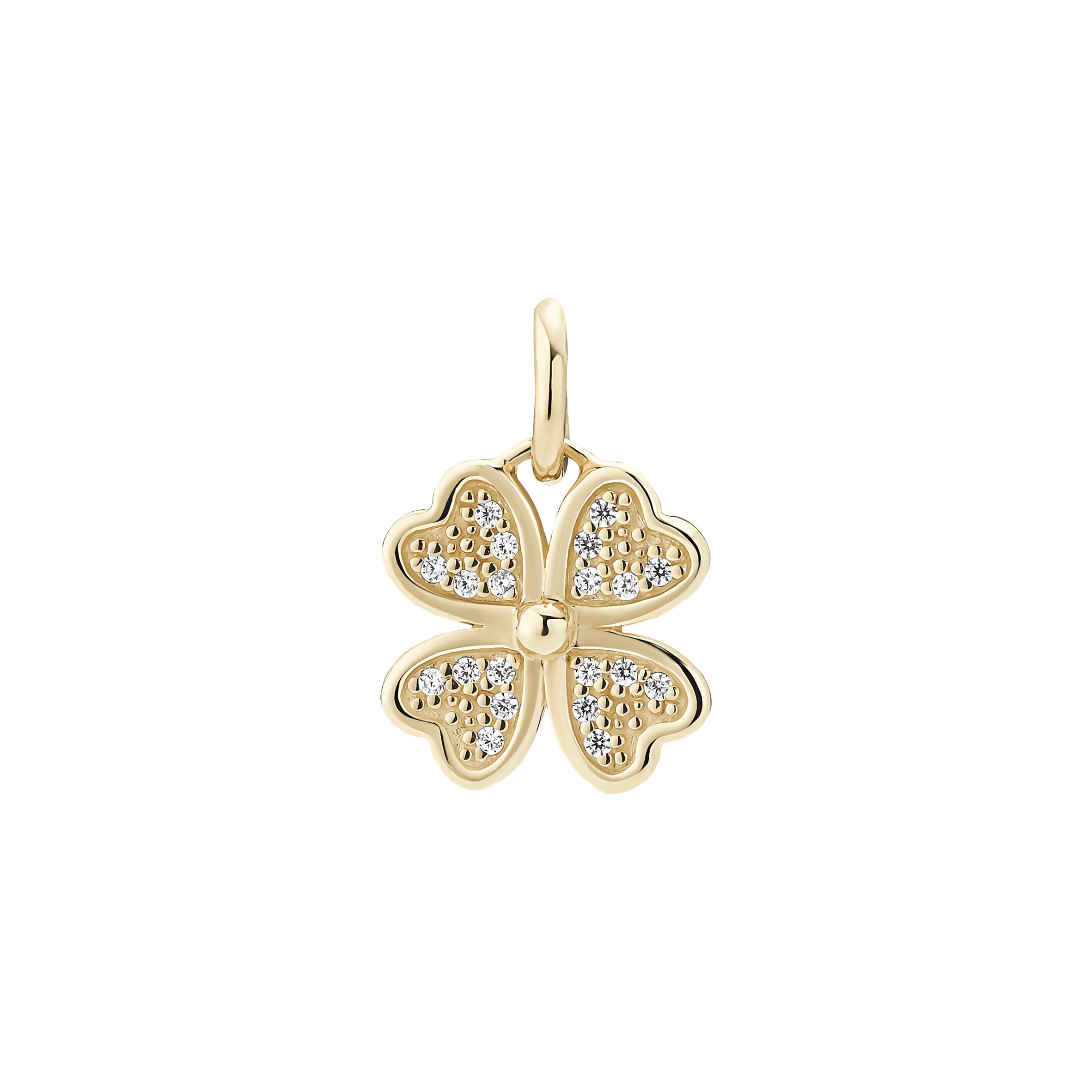 Vedh. kløver 12mm med zirk. 8 karat guld