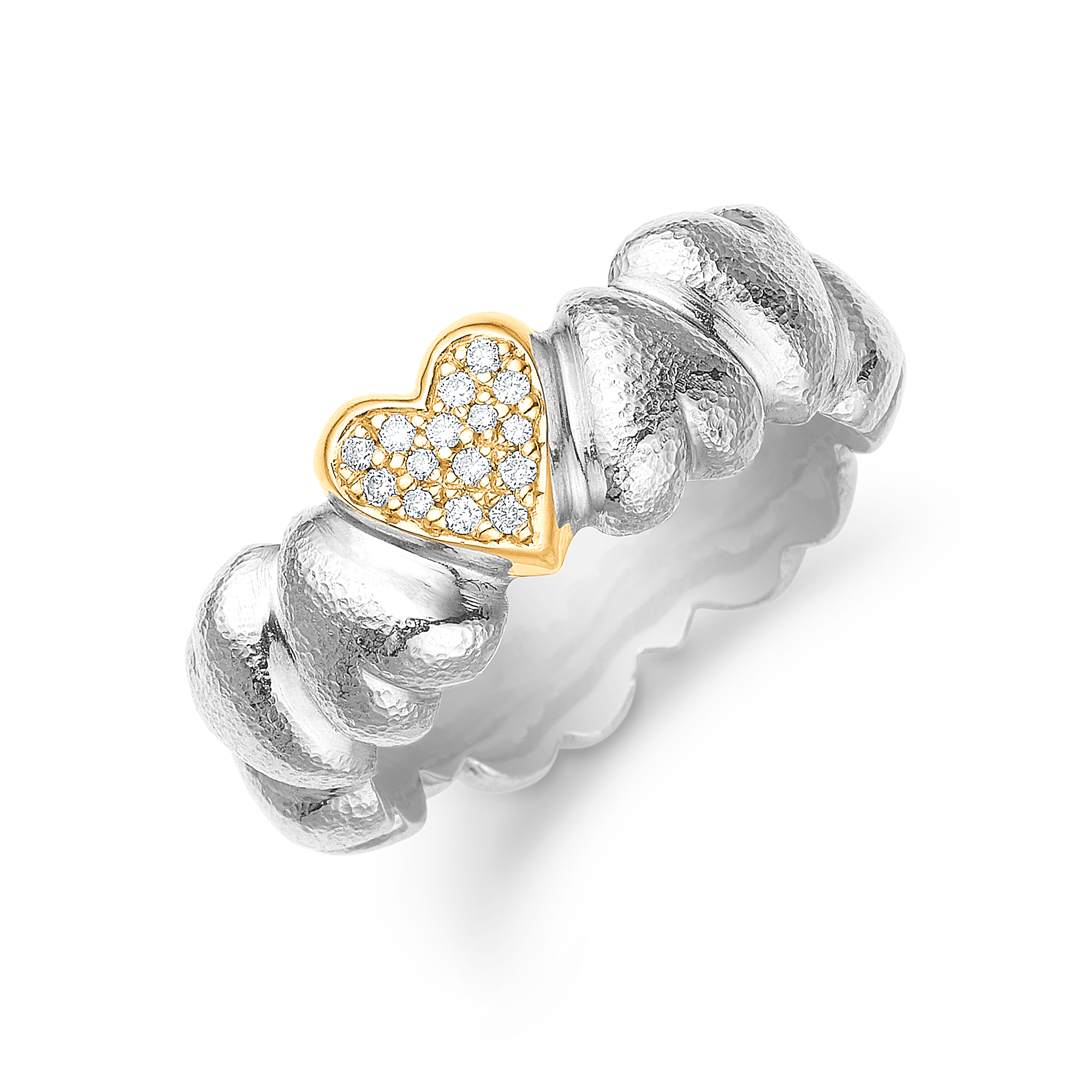 Vielsesring 14 kt. hvidguld - 2 farvet m. 2x0.004 ct. + 13x0.006 ct.